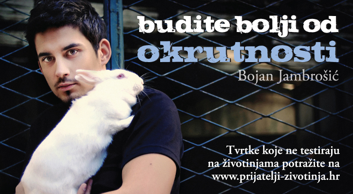 Nova zvijezda hrvatske estrade Bojan Jambrošić udružio je s nama snage kako bi skrenuo pozornost na životinje ubijane zbog pokusa i pozvao na odabir proizvoda koji nisu testirani na životinjama. Snimanje za kampanju održano je u zagrebačkim ‘raketama’ i realizirano u suradnji s fotografkinjom Marinom Filipović Marinshe, stilistom Ivanom Friščićem, Zvonimirom Franićem koji je bio zadužen za Bojanovu frizuru i vizažisticom Lisom Jericevich. Jumbo plakati pojavit će se u travnju.