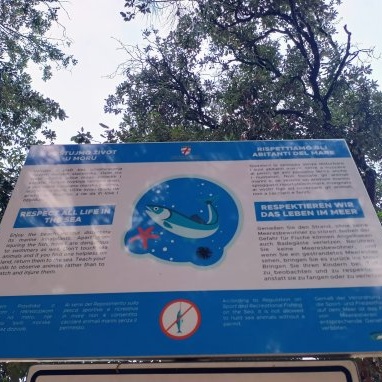 Grad Rovinj podržao je našu inicijativu „Poštujmo naše more” te su postavljene edukativne ploče s ciljem informiranja o očuvanju života u moru. Edukativne ploče upozoravaju građane i turiste na važnost poštovanja života u moru te na zabranu pecanja na plažama. Ploče su namijenjene djeci i odraslima i podsjećaju nas da uživamo u plažama bez uznemiravanja morskih stanovnika.